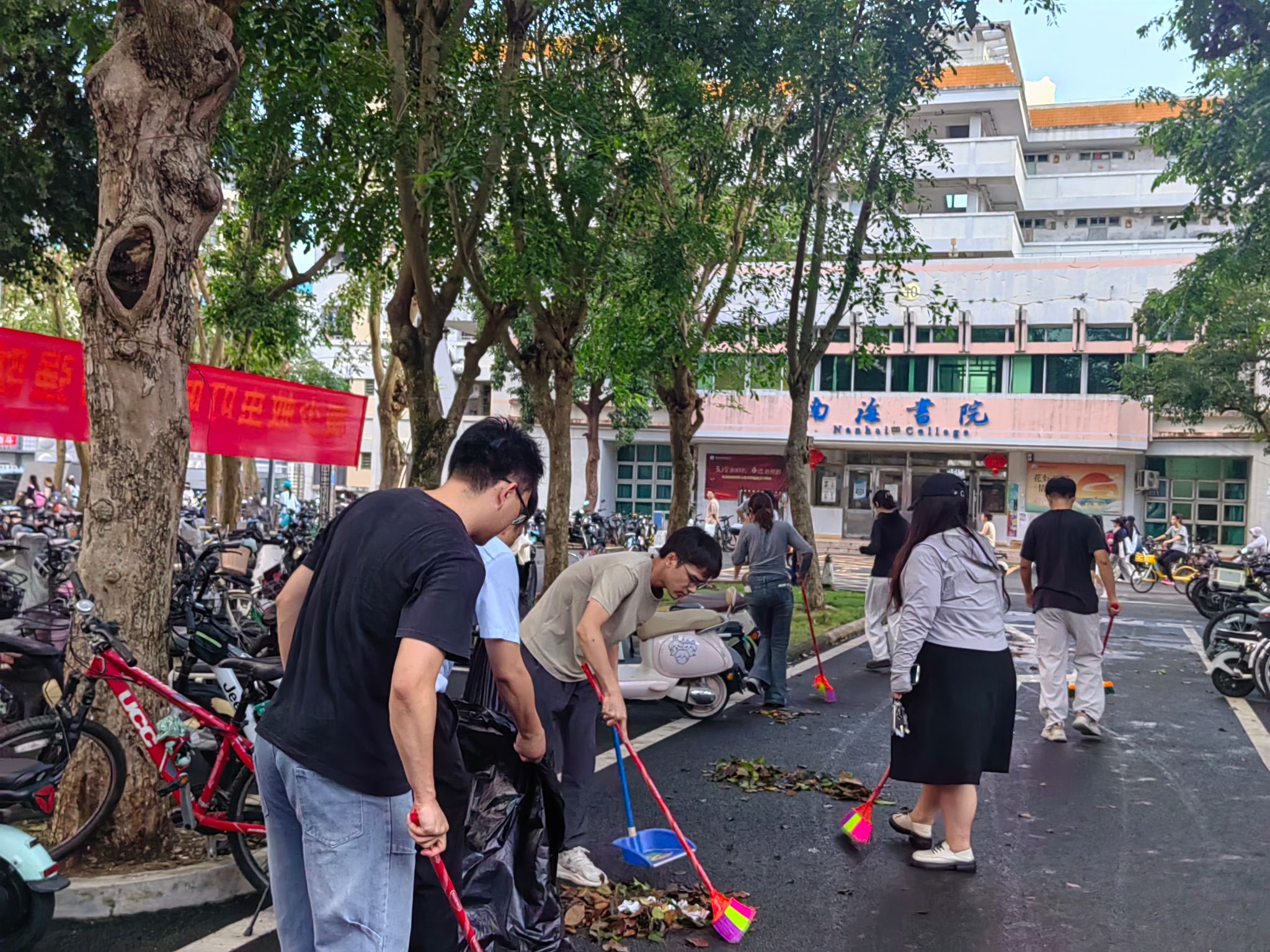2025年10月14日下午,为消除台风“麦德姆”过后的环境卫生隐患,海南大学南海书院组织开展爱国卫生运动,把将劳动实践与爱国卫生活动相结合,重点开展环境卫生整治、防蚊灭蚊等工作。书院辅导员、支部党员和入党积极分子共40多人参加。